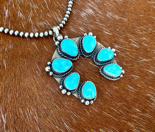 Blue Ridge Turquoise Squash Blossom Pendant Necklace