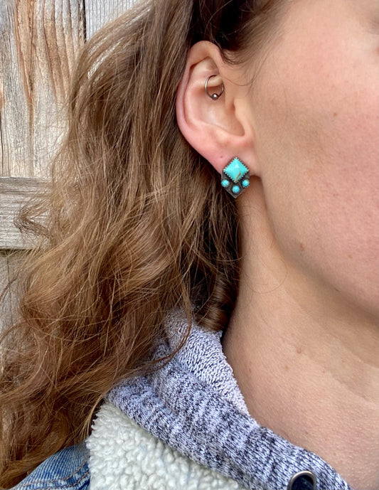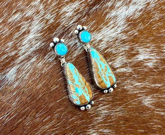 Royston Ribbon Turquoise & Kingman Turquoise dangle stud earrings