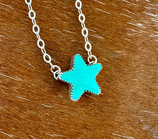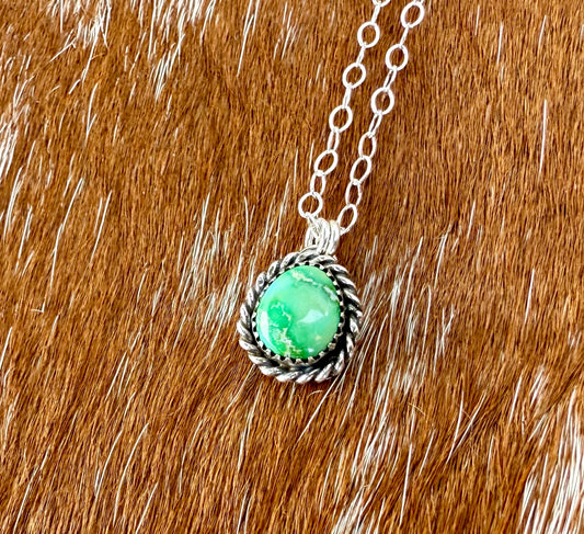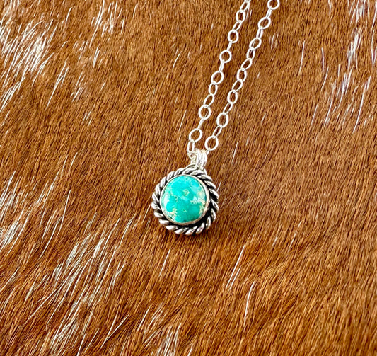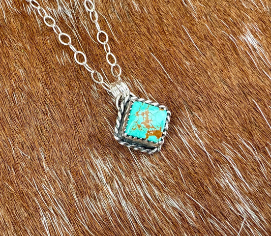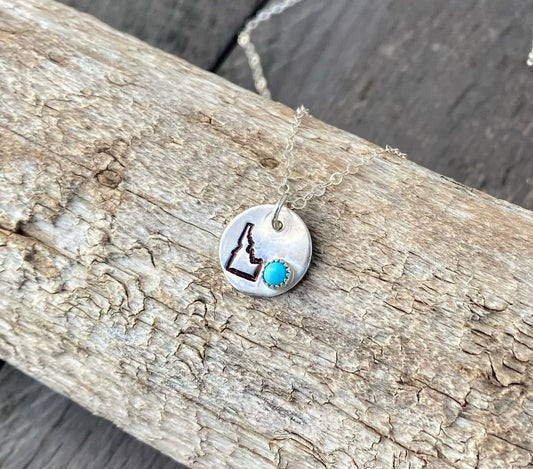 Sterling Silver Idaho State Necklace with Mini Kingman Turquoise Stone
