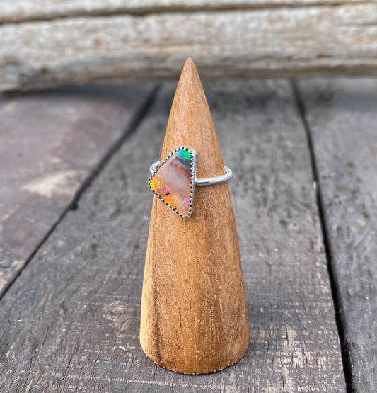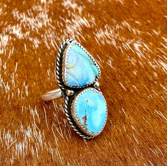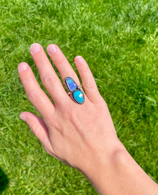 Fine Australian Boulder Opal & Blue Ridge Turquoise Double Stone Ring