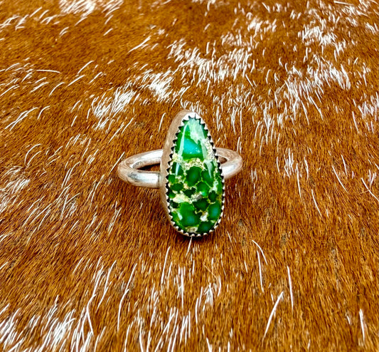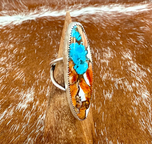 Kingman Turquoise, Spiny Oyster and Bronze composite split shank bar ring